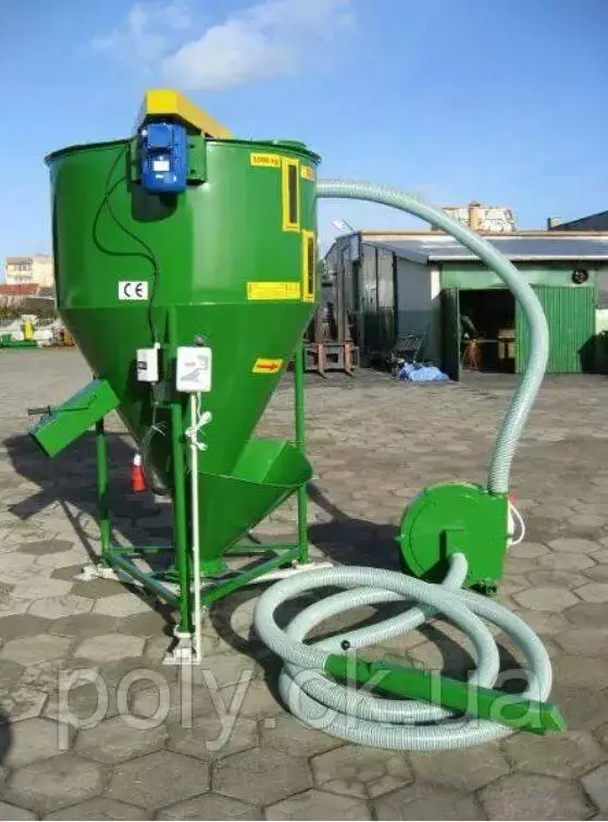 Міні комбікормовий завод включає в себе системи подрібнення та змішування інгредієнтів. Інгредієнти завантажуються автоматично в дробарку через труби з повітряним потоком.